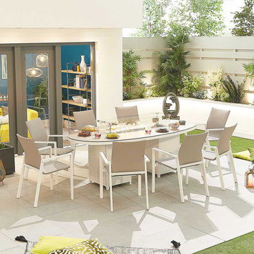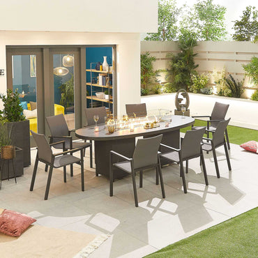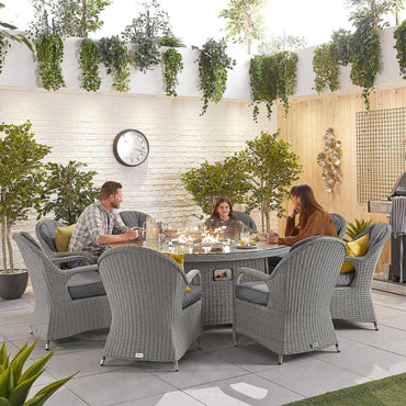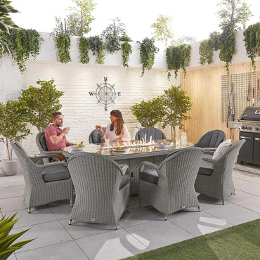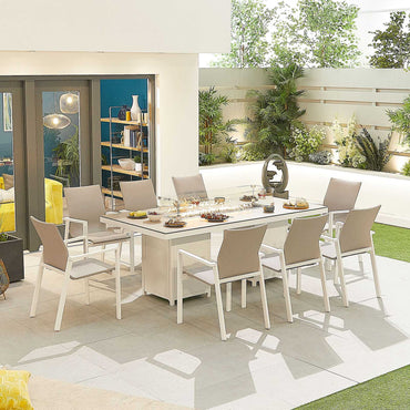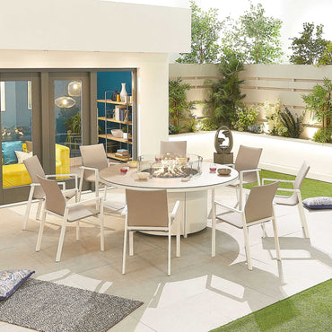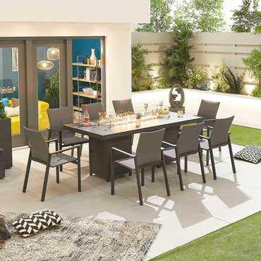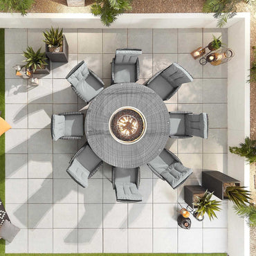 Hugo Fabric 8 Seat Dining Set with Firepit