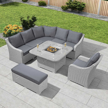 Harper Deluxe Corner Dining Set with Fire Pit Table