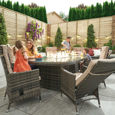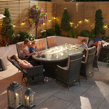 The Roma 8 Seat Dining Set Firepit Table is ideal for any large outdoor area. Ideal for al fresco dining with family or friends and to...