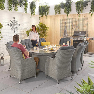 Heritage Thalia Fireglow 8 Seat Rattan Dining Set Gas Fire Pit Table is the ideal choice for those who want to enjoy their garden all year...